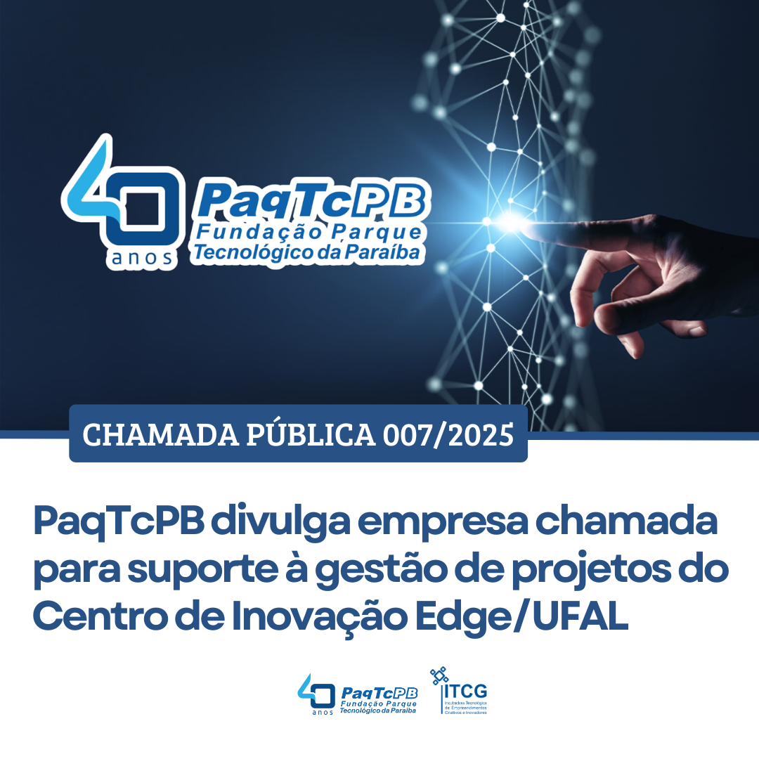 A Fundação Parque Tecnológico da Paraíba (PaqTcPB) divulgou o resultado do Chamamento Público nº 07/2025, destinado à seleção de empresa para prestação de serviços de suporte à gestão de projetos junto aos coordenadores do Centro de Inovação EDGE/UFAL.