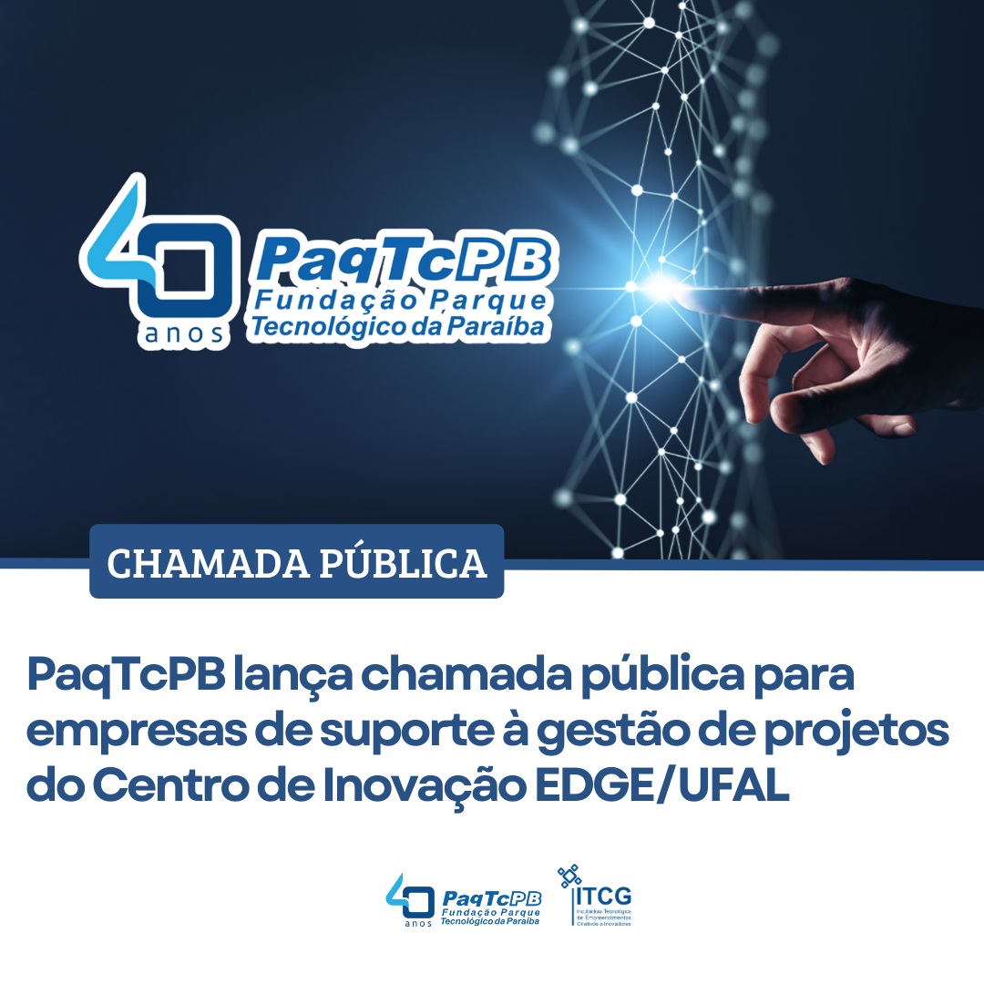 A Fundação Parque Tecnológico da Paraíba (PaqTcPB) publicou o Chamamento Público nº 007/2025, referente ao Processo Administrativo nº 414/2025, com o objetivo de contratar empresa especializada para a prestação de serviços de suporte à gestão de projetos junto aos coordenadores do Centro de Inovação EDGE/UFAL, em conformidade com o Plano de Ação Financeiro (PAF) do Programa EDGE.