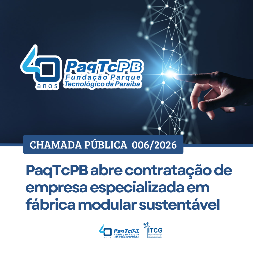 A Fundação Parque Tecnológico da Paraíba (PaqTcPB) publicou o Chamamento Público nº 003/2026, destinado à contratação de empresa especializada para execução de serviços técnicos vinculados ao projeto Raquetes de Palmas Forrageiras.