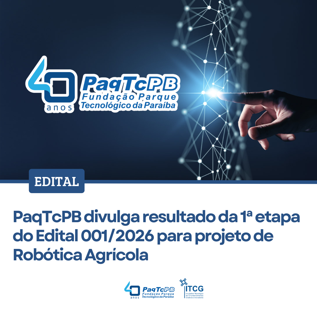 A Fundação Parque Tecnológico da Paraíba (PaqTcPB) divulgou o resultado da primeira etapa do Edital 001/2026, referente ao Processo Seletivo Simplificado para bolsistas, com atuação no projeto “Núcleo de Robótica Agrícola”