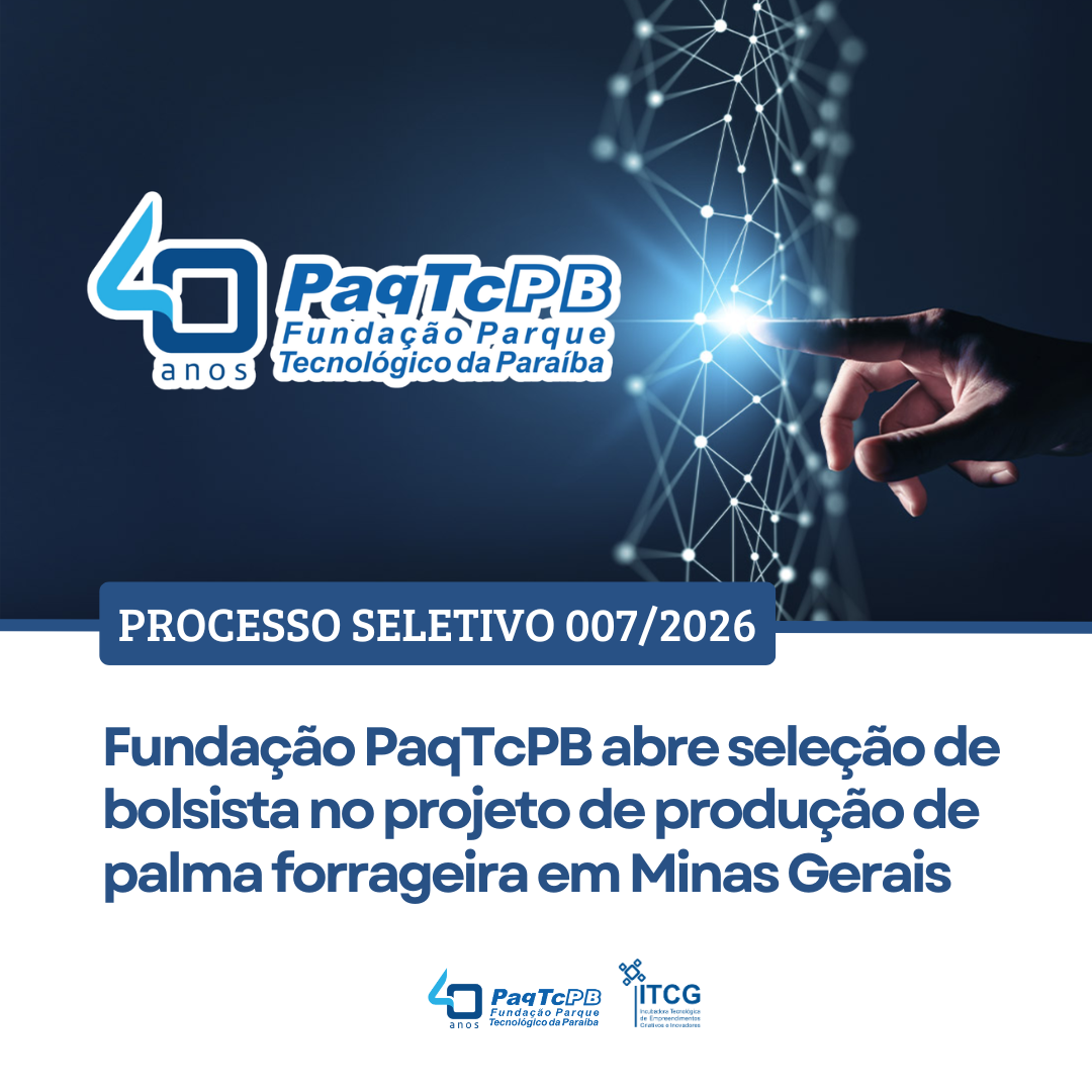 A Fundação Parque Tecnológico da Paraíba (PaqTcPB) publicou o Chamamento Público nº 003/2026, destinado à contratação de empresa especializada para execução de serviços técnicos vinculados ao projeto Raquetes de Palmas Forrageiras.